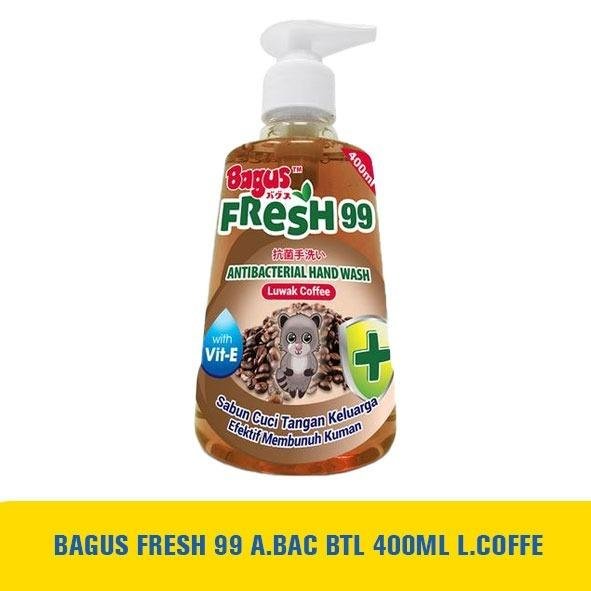 Bagus Fresh 99 Antibacterial Hand Wash, sabun cuci tangan cair yang diformulasikan dengan antibakteri untuk melindungi tangan dari bakteri dan kuman penyebab penyakit serta dilengkapi dengan wangi yang menyegarkan.