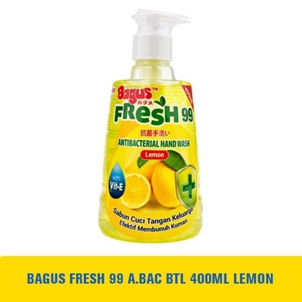 Bagus Fresh 99 Antibacterial Hand Wash, sabun cuci tangan cair yang diformulasikan dengan antibakteri untuk melindungi tangan dari bakteri dan kuman penyebab penyakit serta dilengkapi dengan wangi yang menyegarkan.