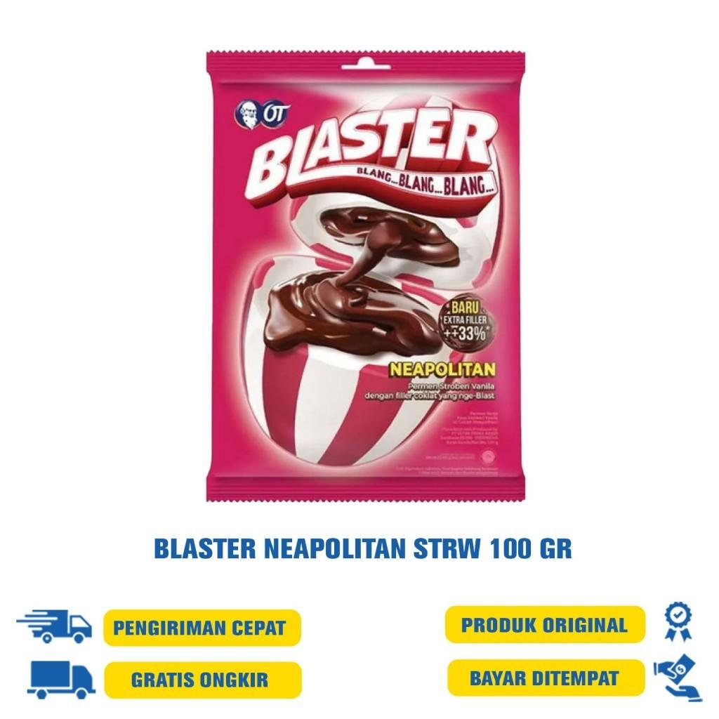 BLASTER Neapolitan Permen Strawberry Vanila 100 g adalah permen belang yang memiliki kombinasi rasa unik, dengan krim neopolitan di dalamnya. Memiliki tekstur yang crunchy, dan membuat mulut Anda segar saat memakannya. Persembahan dari Orang Tua Group, memberikan Anda kenikmatan yang sensasional. Dibuat dengan bahan berkualitas menghasilkan permen yang cocok untuk disantap setiap hari.