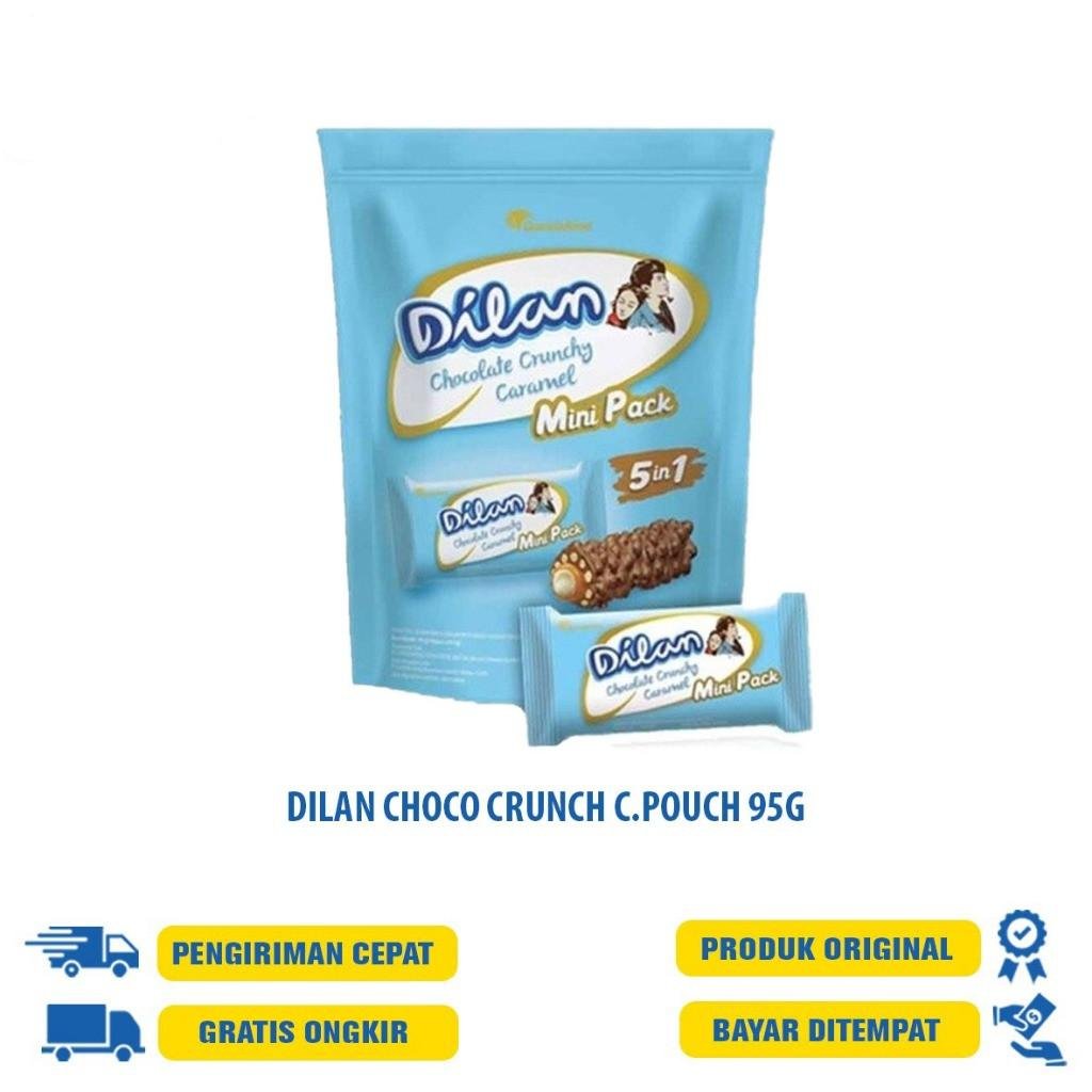 Coklat Dilan dengan 5 lapis kenikmatan (5 in 1) Krim Vanilla, Wafer Stick, Karamel, Crispy, Biscuit, Coklat Salut. Sharing pack yang higienis.