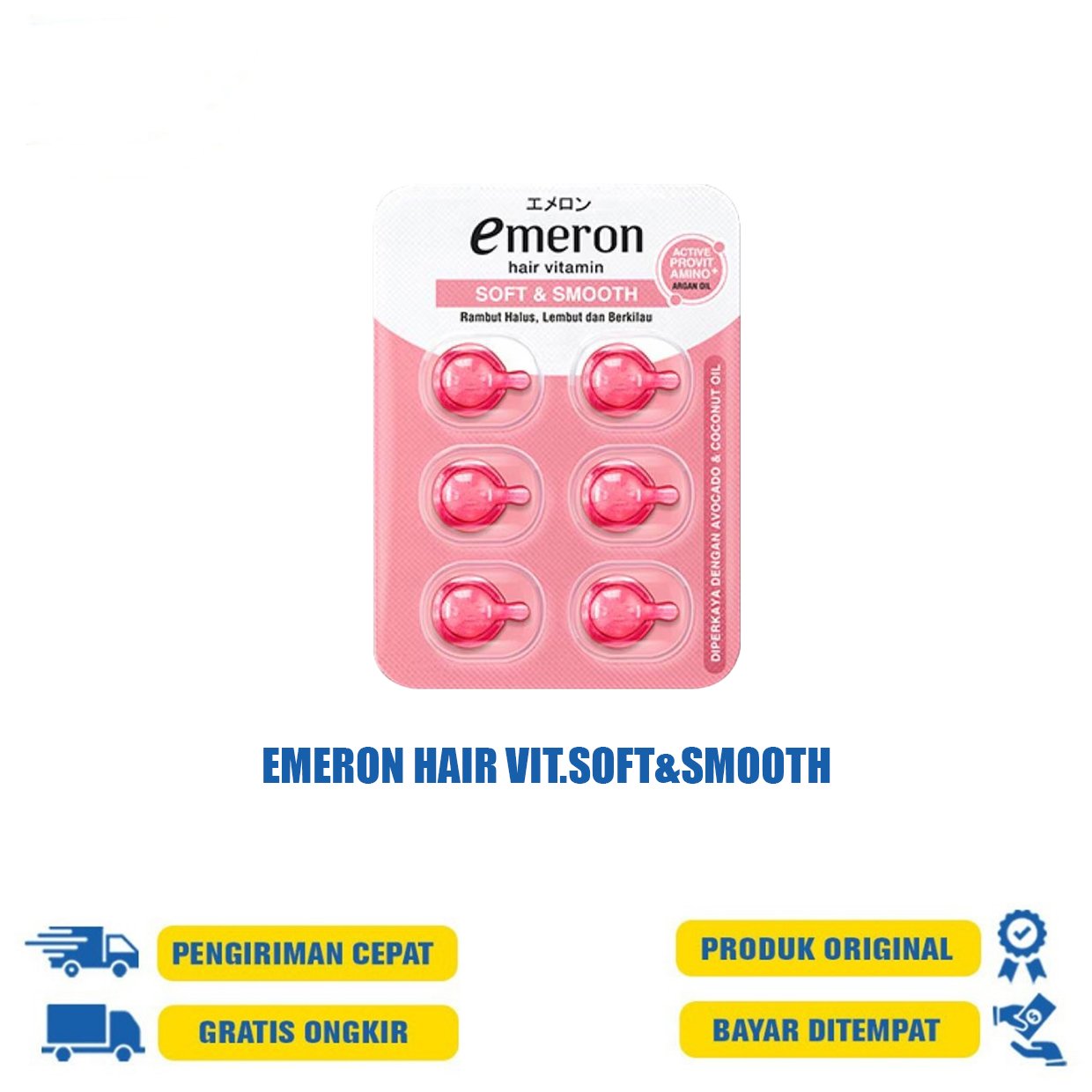 Emeron Hair Vitamin Soft & Smooth. Vitamin rambut yang mencegah kerusakan rambut, menjaga kelembaban rambut sehingga rambut terasa dan halus.