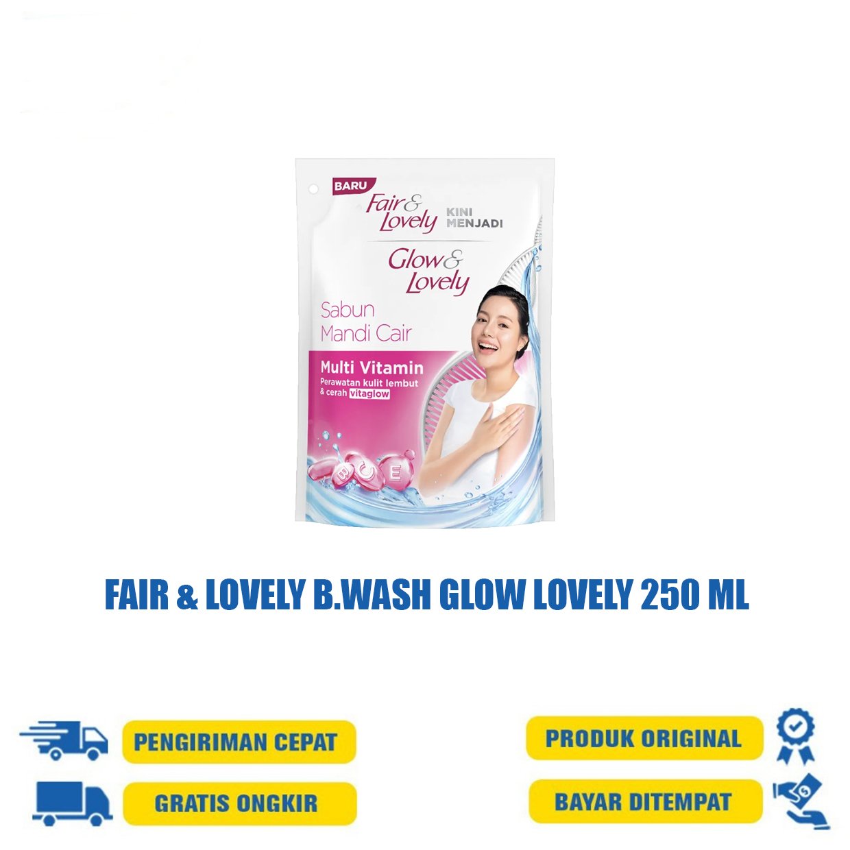 Dari merek terpercaya Glow & Lovely, kini hadir Brightening Body Wash baru! rasakan sabun mandi cair dengan busa melimpah, tekstur yang lembut di kulit, dan wangi tahan lama hingga 6 jam di setiap pemakaiannya. Dengan kandungan Multi Vitamin dan Niacinamide bikin kamu punya kulit glowing menyeluruh!