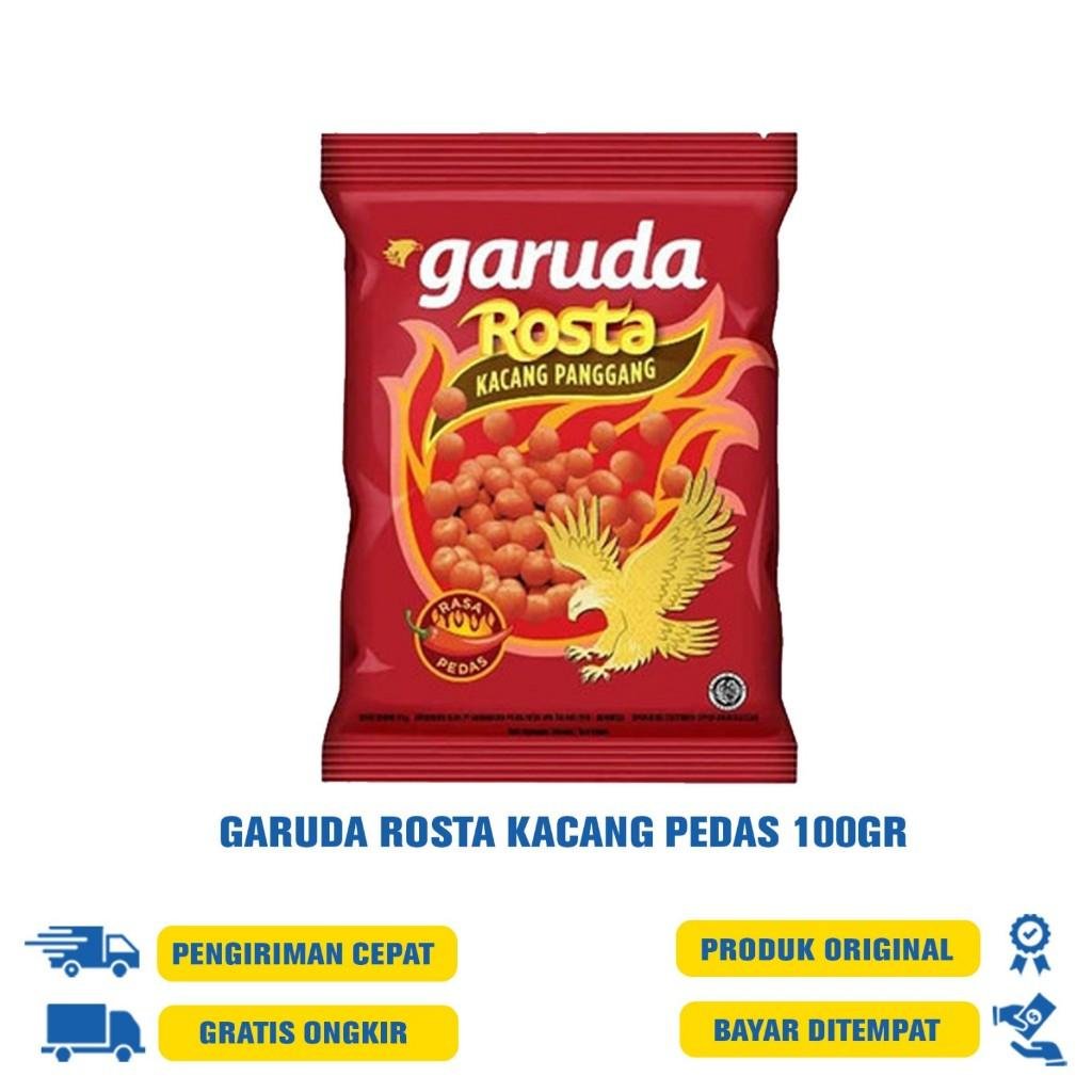 Kacang garuda rosta dihasilkan dari kacang tanah pilihan yang garing dan padat, serta dibalut oleh tepung terigu dan dipanggang dengan minyak nabati sehingga memiliki kandungan yang kaya akan lemak tak jenuh, serta dapat mengurangi risiko jantung koroner pada hidup Anda, sangat cocok dinikmati saat santai bersama teman, sahabat, dan keluarga.