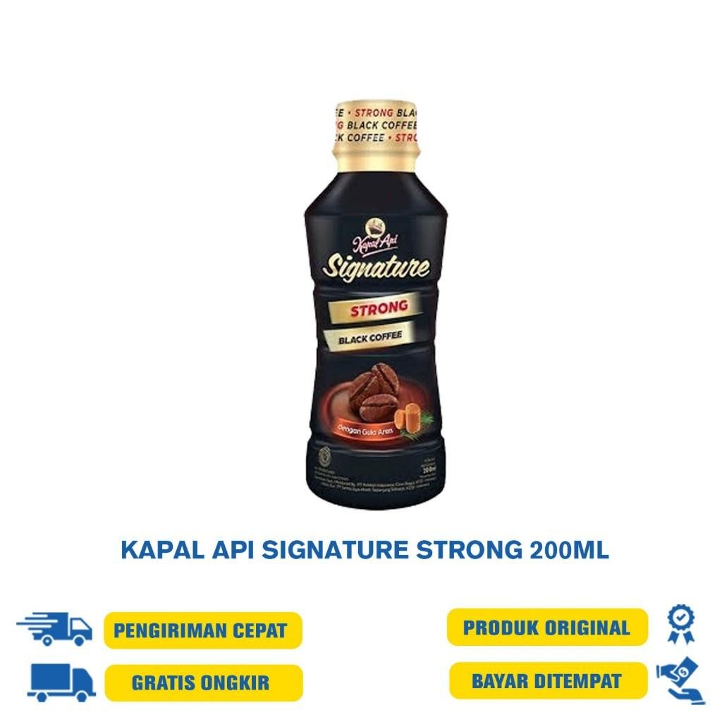 Kapal Api Signature Strong Black Coffee Pet 200 ml adalah minuman kopi hitam gula aren dalam kemasan. Berasal dari biji kopi pilihan yang diolah menggunakan teknik khusus, sehingga menghasilkan kopi yang nikmat dengan rasa kopi yang lebih kuat dan pekat. Dengan tambahan gula aren di dalamnya, memberikan sensasi rasa manis gurih pada kopi yang pas dan menyeimbangkan rasa pahit dari kopi. Kopi memiliki tekstur yang kental dengan aroma yang nikmat serta rasa manis pahit yang pas. Dengan kandungan kafein di dalamnya yang dapat membantu meningkatkan semangat dan menghilangkan rasa ngantuk saat beraktivitas. Dikemas dalam kemasan khusus botol PET ukruan 200 ml. Akan lebih nikmat jika diminum dalam kondisi dingin. Segera miliki Kapal Api Signature Strong Black Coffee Pet 200 ml dan nikmati kelezatan kopinya.