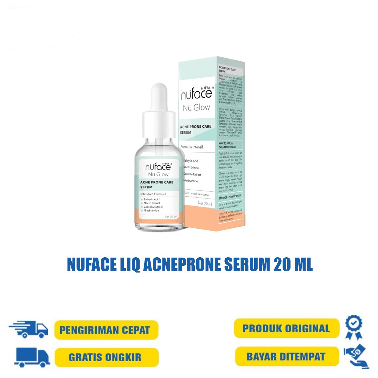 Atasi masalah jerawatmu dengan Nuface Nu Glow Liquid Acne Prone Care Serum yang mampu melawan bakteri penyebab jerawat. Aman digunakan oleh Ibu Hamil, Ibu Menyusui, Pria maupun Wanita sejak usia 13 tahun.