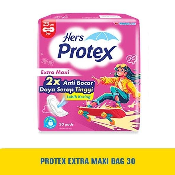 Detail produk: Hers Protex Daily Comfort . Pembalut siang dan malam dengan panjang dan bersayap memiliki pin hole area, soft edge dan easy open technology.