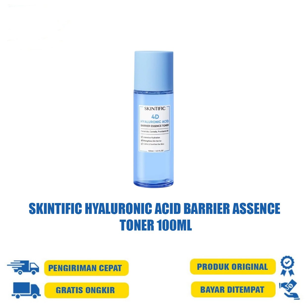 Essence toner yang dapat melembabkan kulit dengan tekstur yang mudah menyerap. Mengandung ceramide dan centella asiatica yang dapat menjaga skin barrier dan menenangkan kulit. 4D Hyaluronic acid memberikan kelembaban dan menguncinya di kulit sehingga dapat membantu merawat masalah kulit kering atau dehidrasi.