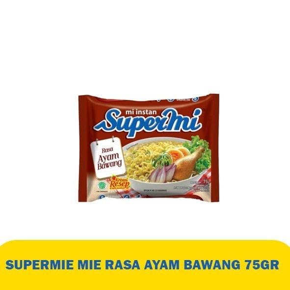Supermi Ayam Bawang merupakan salah satu varian rasa dari Supermi Dibuat dari bahan terbaik dan bumbu yang kaya rasa Supermi Ayam Bawang akan menjadi hidangan spesial untuk penghilang lapar Anda Supermi Ayam Bawang hadir memadukan mie kenyal dengan kaldu ayam gurih yang memberikan citarasa istimewa di lidah.