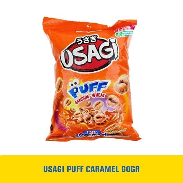 Usagi Puff Gandum Wheat Caramel adalah makanan ringan berbentuk puff yang terbuat dari gandum dengan berbahan dasar dari bahan berkualitas serta memiliki rasa yang gurih dan manis dengan cita rasa caramel. Ketika dimakan, snack ini tidak menempel digigi, lebih renyah, lebih padat dan lebih besar dibanding snack lainnya.